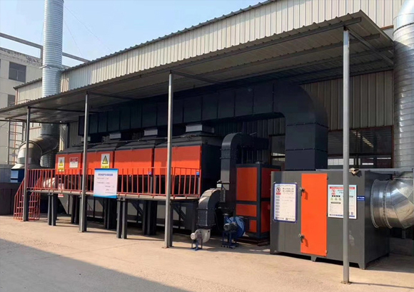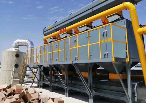 在化學反應過程中,利用催化劑降低燃燒溫度,加速有毒有害氣體完全氧化的方法,叫做催化燃燒法。由于催化劑的載體是由多孔材料制作的,具有較大的比表面積和合適的孔徑,當加熱到300~450℃的有機氣體通過催化層時,氧和有機氣體被吸附在多孔材料表層的催化劑上,增加了氧和有機氣體接觸碰撞的機會,提高了活性,使有機氣體與氧產生劇烈的化學反應而生成CO2和H2O,同時產生熱量,從而使得有機氣體變成無毒無害氣體。