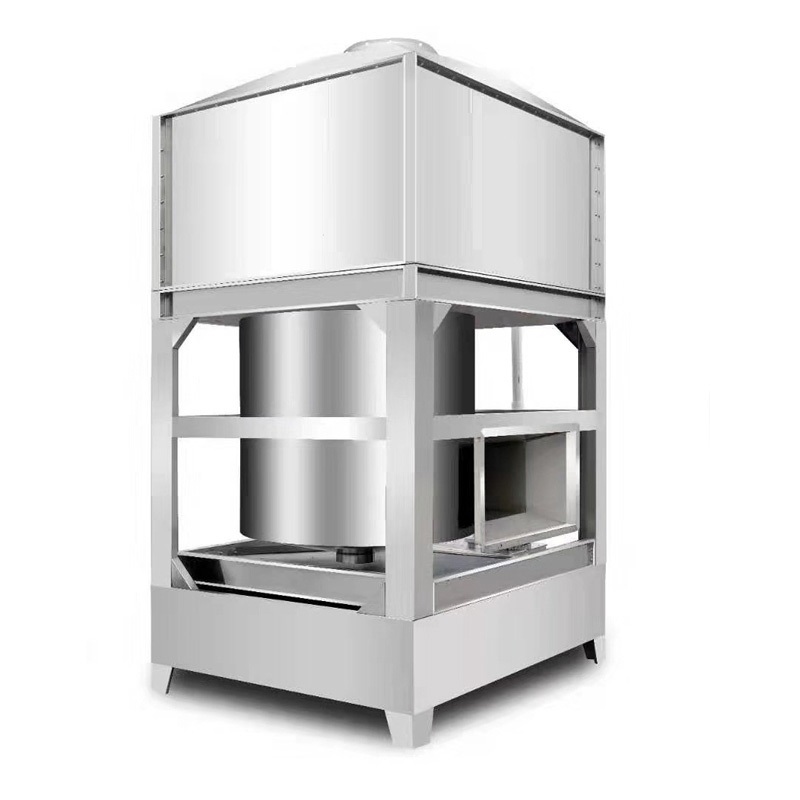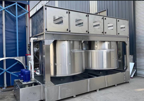 氣旋噴淋塔在離心力作用下,含塵氣體呈橫向向心運動,含塵氣體停留時間更長,洗滌效果更好,徹底改善了噴淋塔在某些特定工況下存在的除塵不徹底、水噴淋塔容易堵塞等技術(shù)缺陷。產(chǎn)品采用專力技術(shù),避免水泵及噴頭的堵塞,大大提高生產(chǎn)效率,其中水池的水可循環(huán)使用,避免產(chǎn)生二次污染造成的困擾,更節(jié)約了水資源。氣旋塔內(nèi)安裝有若干個“圓形旋流桶”和高效除霧板。旋流桶內(nèi)放有實心填料球,最上層的除霧板用來凈化水霧,達到脫水霧的目的,含塵氣體在塔內(nèi)旋流上升、并在各板上與由塔頂進入的液體旋流接觸,完成除塵任務(wù);通過離心力的作用,廢氣中的大顆粒沉入水池, 最后由人工撈出清理機殼,這樣氣體得到凈化,達標(biāo)排放,同時氣旋塔內(nèi)的水可以繼續(xù)循環(huán)使用。