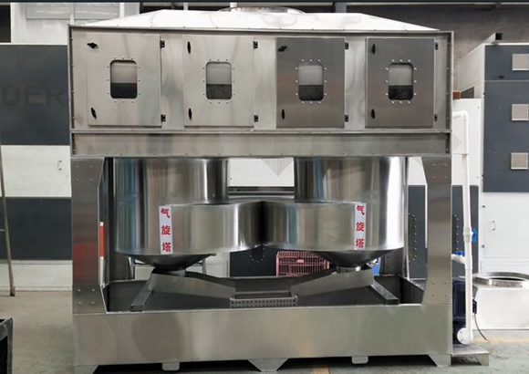 氣旋噴淋塔裝置主要由主旋流部分、填料除霧部分、噴淋部分、水循環(huán)部分等組成。根據(jù)廢氣種類氣旋塔設(shè)備主體材質(zhì)可選用:不銹鋼,炭鋼等。